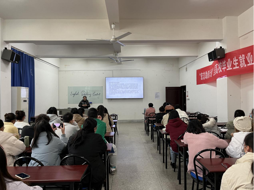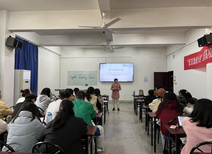 2021年12月3日,英语系2018级商务英语方向的同学们在逸夫人文楼A1010召开了实习总结大会。商务英语实习指导老师代表钟馨老师、罗静老师以及2019级商务英语方向的同学也参加了本次实习总结大会。