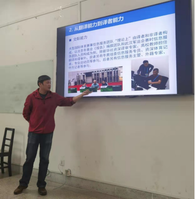 吕奇教授从辨析翻译能力和译者能力的区别入手,结合自身丰富的语言服务实践经历,从交际能力、职业能力和翻译能力等三个方面透彻分析了译者能力的内涵,并就如何有效提升译者能力为同学们指明了努力的方向和路径。吕奇教授风趣幽默,讲座深入浅出,赢得了同学们的阵阵掌声。
