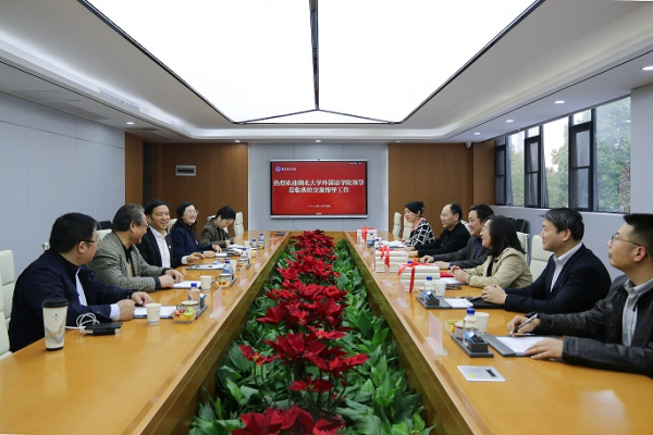 3月15日下午,湖北大学外国语学院领导班子赴湖北商贸学院走访校友,并举行湖北大学教育专业学位硕士研究生校外导师聘任仪式。学院知名校友,湖北商贸学院董事长、校长陈卓国教授热情接待了学院领导班子。