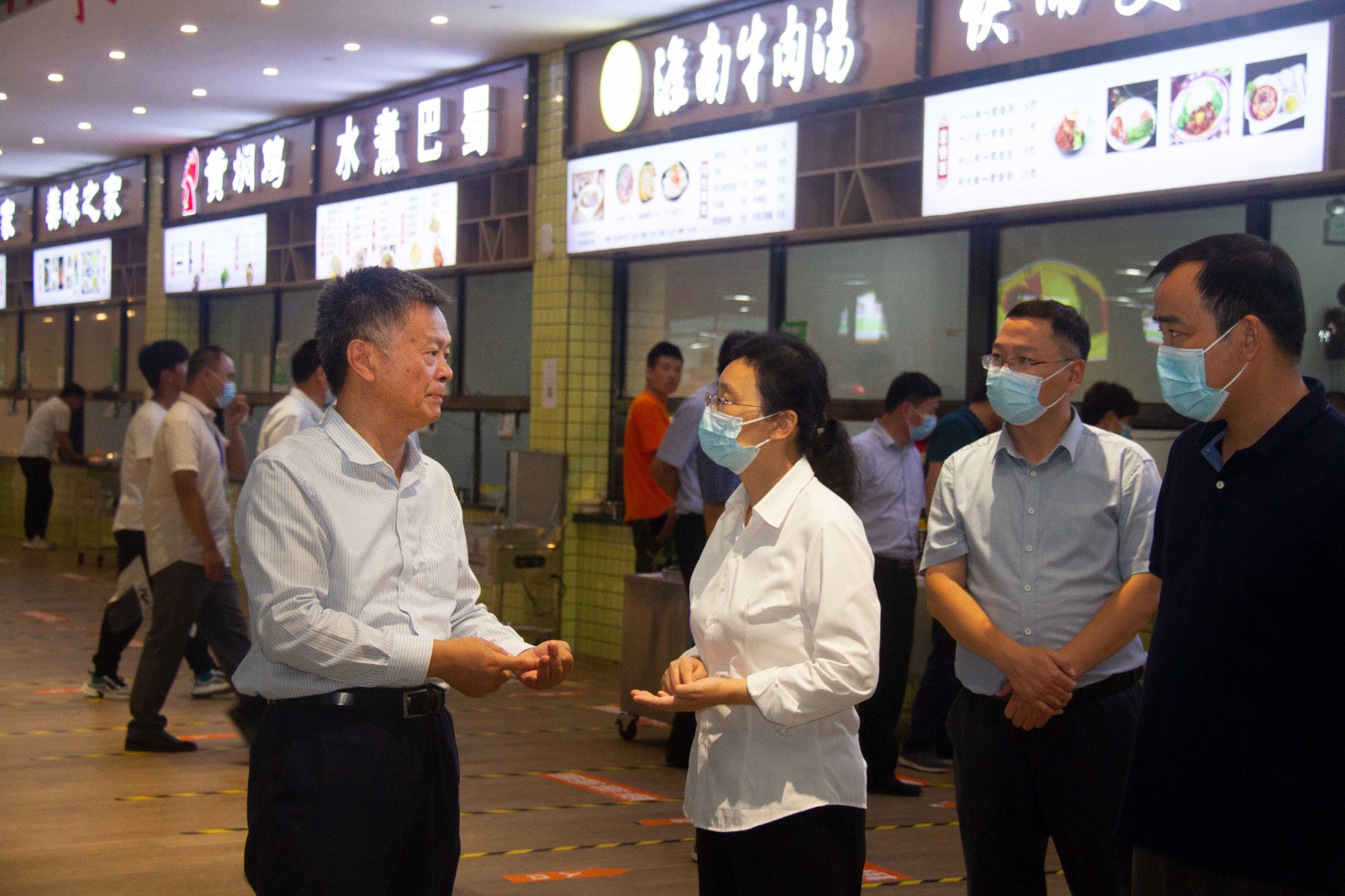9月30日下午,淮北市委常委、杜集区委书记姜颖一行莅临我校调研指导工作,校领导班子及相关部门负责人陪同调研。校长杨兵对姜颖一行的来访表示热烈欢迎。调研领导深入学校,实地走访校园环境,与学校领导班子成员进行深入交流。在实地查看校园,听取了相关工作汇报后,淮北市委常委、杜集区委书记姜颖一行实地察看了学校食堂的环境卫生、食品贮存、饭菜质量、设备设施和餐饮具清洗等情况。领导们对我校食堂的规范操作给予了肯定,希望学校继续认真细致工作,确保食堂安全。针对此次检查的指导和建议,学校将认真执行,不断完善,做好我校各方面安全工作。