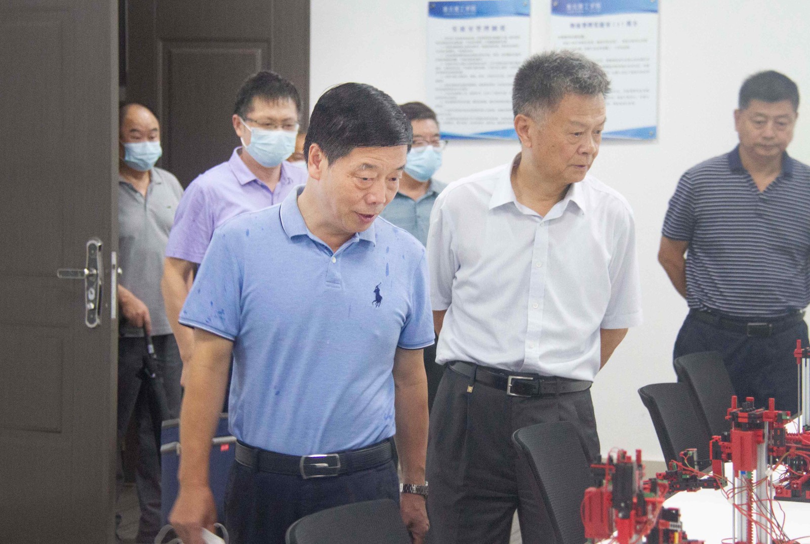8月9日,省教育厅调研专家组组长、安徽工程大学党委书记刘宁一行来淮北理工学院调研常态化疫情防控和开学准备工作。校领导向调研专家组详细汇报了学校疫情防控、教学计划、教学设施、教学质量保障、安全与后勤保障等情况,并陪同调研专家组实地查看了校园入口检查点、教学楼、实验室、餐厅、宿舍和防疫物资储备仓库等场所。调研专家组对学校常态化疫情防控和开学准备工作给予充分肯定并提出了改进意见。