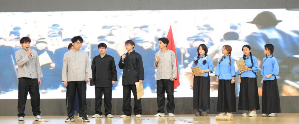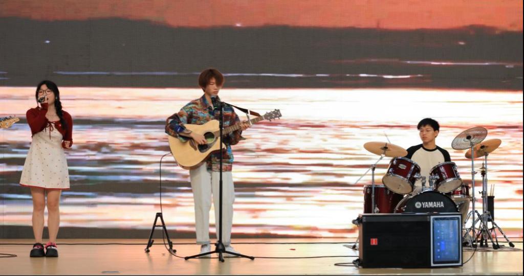 开幕式文艺演出精彩纷呈。由大学生艺术社团呈现的乐队表演《鲜花》成功点燃了现场的激情;大学生舞蹈协会带来的《流金岁月》与《澎湃》以优雅的舞姿诠释了年轻一代的活力与朝气;徽忆话剧社原创话剧《青春接力复兴路》生动地再现了红色历史故事;子衿汉服社的《华夏霓裳》汉服展示则展现了传统文化的独特魅力。整场演出高潮迭起,掌声连连,充分彰显了我校学生社团的旺盛活力与卓越艺术水平。