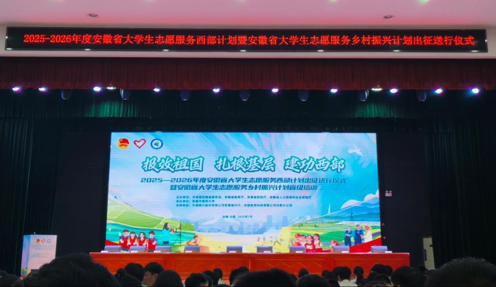 2025-2026年度安徽省大学生志愿服务西部计划出征仪式暨安徽省大学生志愿服务乡村振兴计划省级培训活动,于7月19日至7月22日在合肥市举行。