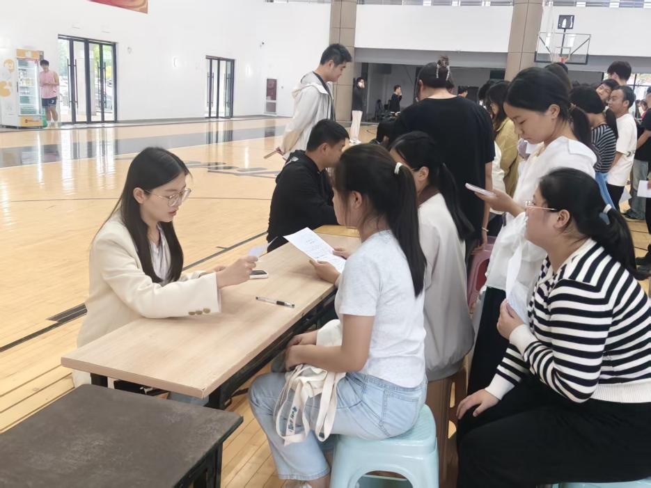 本次双选会通过现场“双向选择,竞争上岗”的形式,公开招聘2025-2026学年度校内勤工助学学生,共提供勤工助学岗位500余个。双选会现场秩序井然,气氛热烈,参加应聘的学生在有意向的岗位前有序地排着队,向招聘岗位的老师递交申请表进行一对一面试。