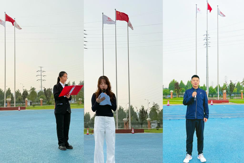2024级电子商务专业赵晓惠同学代表全体青年学子进行国旗下发言。她号召同学们作为新时代青年,要以青春之我、奋斗之我,为实现中华民族伟大复兴贡献青春力量。电信学院团总支书记刘倩表示,期望同学们“眼里有光”:在红旗升起的感动,对国家的永葆热忱,爱国是青年最坚定的信仰;“脚下有路”:专注学习、敬重师长、保持求索,脚踏实地去奋斗是青年最坚实的足印;“心中有梦”:无需苛求宏图伟业,但须确立心之所向且有益社会的目标,担当是青年最鲜明的底色。校团委书记刘帅克从历史、当下与未来三个维度,阐述了爱国主义与青春担当的内涵。他以双堆集战役先烈的英勇事迹,激励青年学子在学习与生活中直面挑战、永不言弃。谈及当下,他援引校长杨兵同志在“大学的第一堂思政课”中关于校训“穷理、践实、精工、笃行”对师生修身养性内涵的阐述。指出践行当体现于勤奋学习、公益活动、同窗互助等日常行动之中。面向未来,他勉励全体同学要在课堂学习中锤炼扎实的专业本领,以积极姿态书写无悔青春。