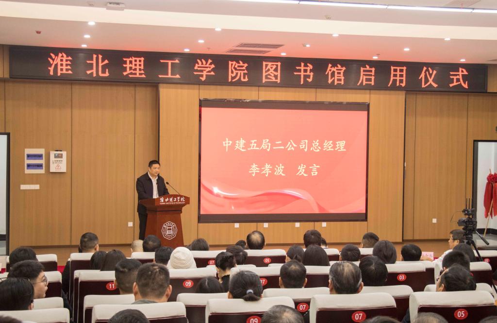 秋意正浓,新颜绽放。10月15日上午,淮北理工学院图书馆开馆仪式在图书馆106报告厅隆重拉开帷幕。中国科培教育集团董事长叶念乔,杜集区委副书记、区长史庆超,中建五局二公司总经理李孝波,中建五局二公司中南公司副总经理闫实,项目经理陈盖,淮北理工学院董事长查东辉,校长杨兵,党委书记朱德顺,副校长郑来纪出席。仪式由查东辉主持。