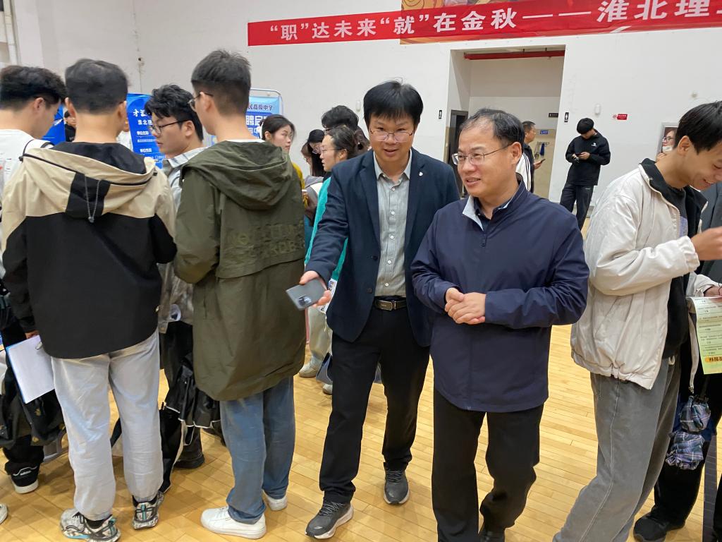 淮北理工学院党委书记朱德顺、淮北市人社局副局长张华、杜集区委组织部常务副部长刘娟等领导亲临现场指导,逐一走访了多家参会企业展位,与用人单位及求职学子亲切交流。朱德顺在现场强调:“持续深化校地、校企之间的战略合作,是实现人才供需精准对接的关键。学校将不断优化人才培养模式,积极拓展就业市场,努力使我们的毕业生不仅‘好就业’,更能‘就好业’,实现更高质量、更充分的就业目标。”