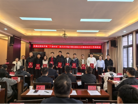 2025年10月16日下午,淮北市杜集区“产业村长”助力乡村振兴暨发展壮大村集体经济工作推进会顺利召开。会上,我校携手杜集区共育“一村一主播”项目再传喜讯:四支师生团队领衔教师——夏丁、陈志操、雷旭、王绎程获聘杜集区电商赋能型“产业村长”,实现项目负责人“满编上岗”,为学校服务地方、助力乡村产业发展再添浓墨重彩的一笔。
