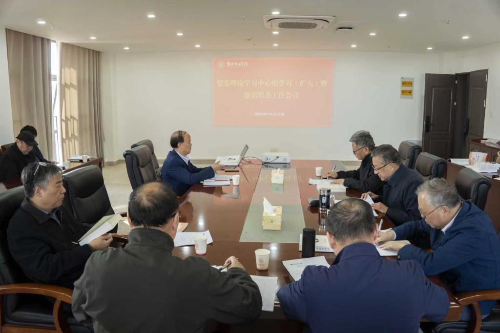 10月22日下午,学校召开党委理论学习中心组学习(扩大)暨意识形态工作会议。校党委理论学习中心组成员、意识形态工作领导小组成员参加会议,会议由校党委书记朱德顺主持。