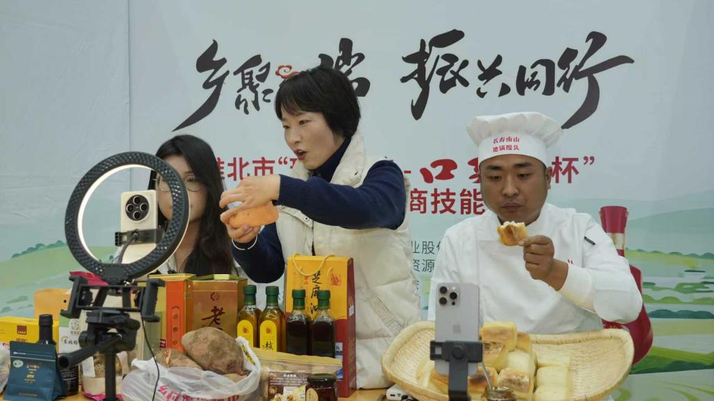 本次大赛以“乡聚云端·振兴同行”为主题,贯穿理论考试、企业实践与预播、初赛与决赛等各个环节,积极践行“以赛促学、以赛促教、以赛促产”的育人理念,有力推动产教融合、服务地方发展。作为一场历时四个月、深度赋能地方发展的电商盛宴,吸引了杜集区基层乡村的报名参赛,村干部带头组建参赛队伍勇闯决赛。本次大赛近六成选品源自淮北本土,通过直播大赛开辟新销路、提升知名度,充分展现了本次大赛赋能乡村振兴的理念。