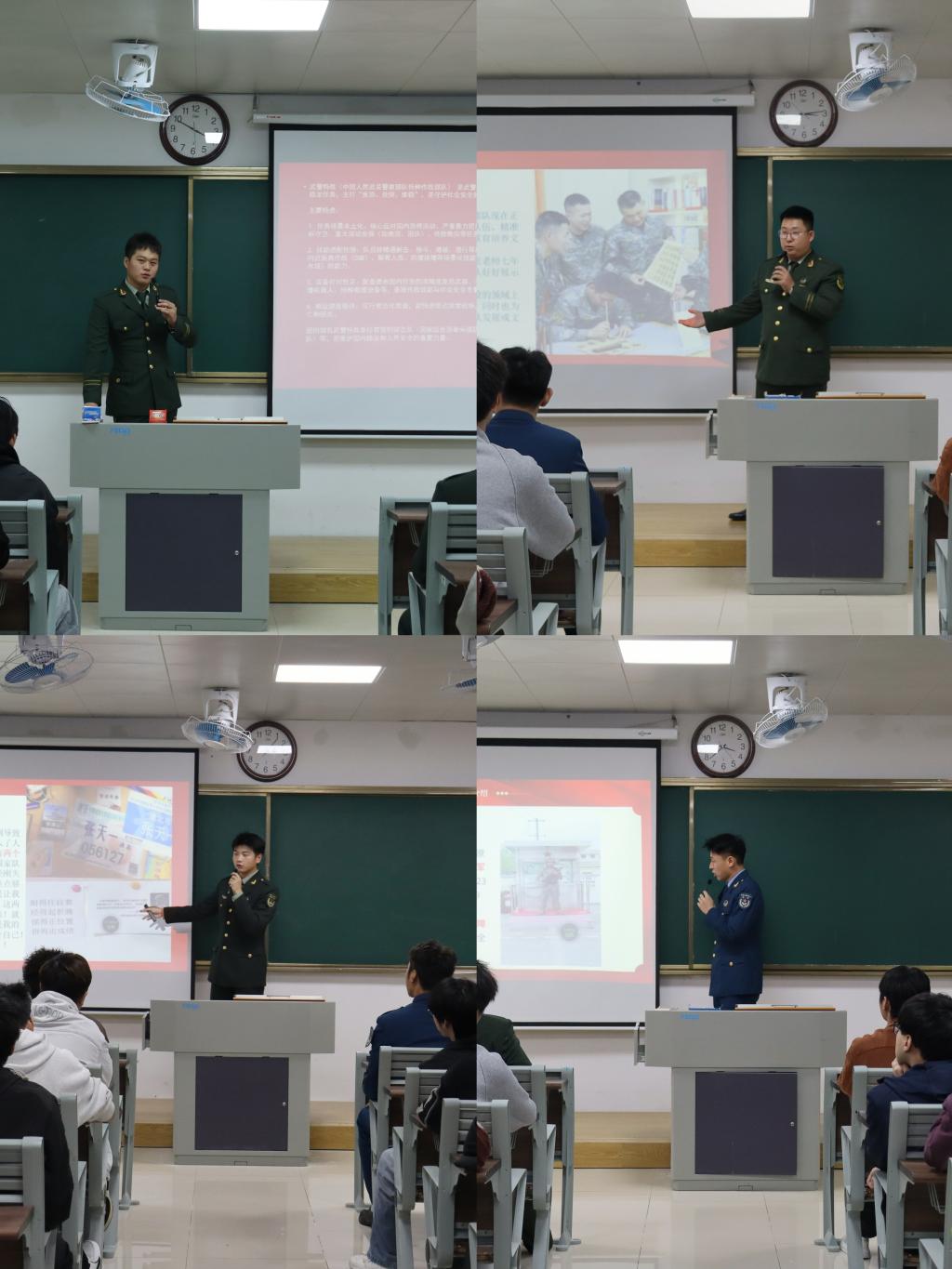 为激发高校学子参军报国热情,输送高素质人才投身国防事业,11月5日下午15:00,我校在一教205、206、207教室成功举办征兵宣讲会。经济与管理学院2026届、2027届300余名学生参加了此次活动。宣讲会由学生处邵琦皎老师主持。