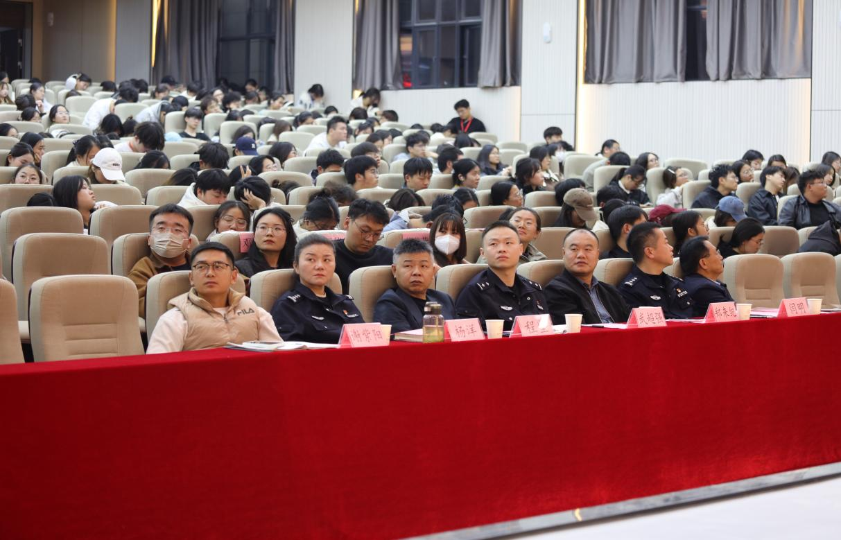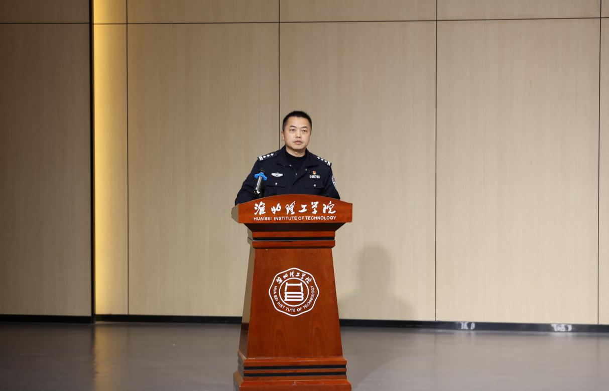 11月12日,淮北市公安局走进淮北理工学院,开展主题为“挺膺担当 反诈有我”反诈宣传活动,共同维护校园安全,提升师生的反诈意识和防范能力。淮北市公安局刑侦支队副支队长闫明、三级警长武超强、高岳派出所副所长杨洋、杜集分局中队队长卢骏,副校长郑来纪、学生处、后勤保卫处、校团委负责人以及各二级学院书记助理、团总支书记、学校全体班长、团支书、学生团学骨干500余名学生参加了本次活动。