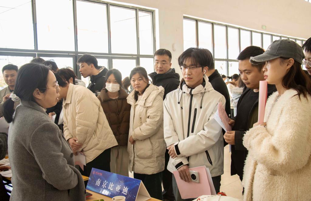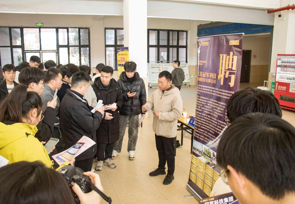 下午2时30分,南京溧水区企业专场招聘会正式开始。招聘会现场,求职学子们手持精心准备的简历,自信满满,主动与招聘负责人沟通交流。