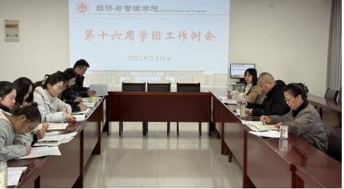 2025年12月16日,淮北理工学院经济与管理学院在行政楼725会议室召开第十六周学团工作例会。副校长郑来纪莅临现场指导,学院院长吴玲主持会议,全体辅导员参会。