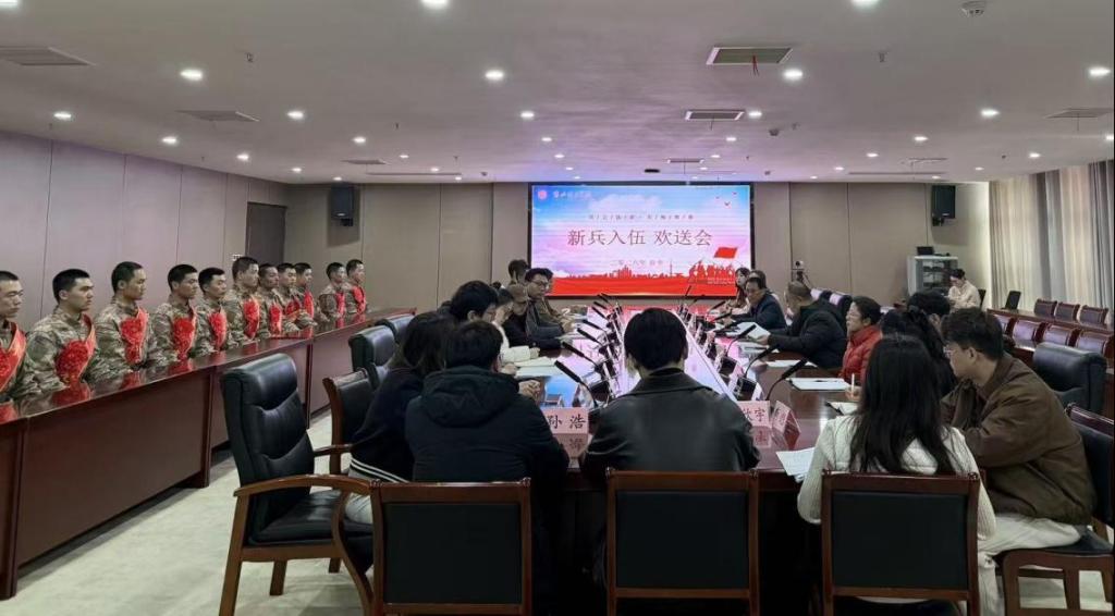3月12日上午,我校在行政楼814举行2026年春季新兵入伍欢送会。校党委书记朱德顺、学生处负责人、各二级学院副书记、书记助理、在校入伍新兵及其辅导员共同参加。欢送会由副校长郑来纪主持。