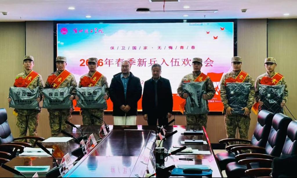会上,学生处负责人介绍了2026年春季征兵工作情况。学校高位重视、精准动员、全程服务,春季全校共有29名同学应征入伍,其中16名同学从学校所在地入伍,圆满完成春季征兵任务。新兵代表表达了对母校培养的诚挚感恩,表示将严守纪律、刻苦训练,为国防事业贡献青春力量。退役大学生代表分享了军旅经历,勉励入伍新兵珍惜时光、书写无悔青春。