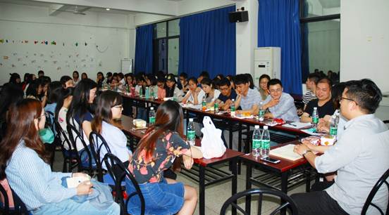 5月10日16时,法语系的三位优秀毕业生和老师们就法语系发展现状进行讨论。同学们提出,大三分流后经济班对文学不太重视,口译课浅尝辄止不深入,外教课程过于随意等问题与老师们探讨。老师们也对一个个问题进行了讨论。最后,法语系系主任张凌老师寄语,希望同学们记得母校,记得这个度过四年时光的地方,祝愿同学们的以后路越走越好,为母校增添光彩。