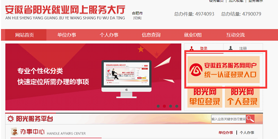 答:打开阳光就业网上服务大厅:ygjy.ah.gov.cn通过点击“安徽政务服务网用户统一认证登录入口”