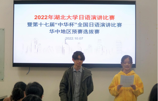 为锻炼口语表达和语言综合运用能力,展现日语系同学的学习风采,并选拔“第十七届中华全国日语演讲比赛”华中赛区预赛参赛选手,2022年10月7日下午,外国语学院日语系于逸夫楼A1010举办2022年湖北大学日语演讲比赛。比赛由梁青、刘海燕、张静、唐芙蓉、吕端、张晶鑫六位老师担任评委。