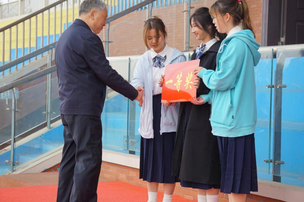 最后,学校副校长汪建利、教务处处长陈国平、后勤处处长程坚、学院院长王家云为获奖班级颁奖。