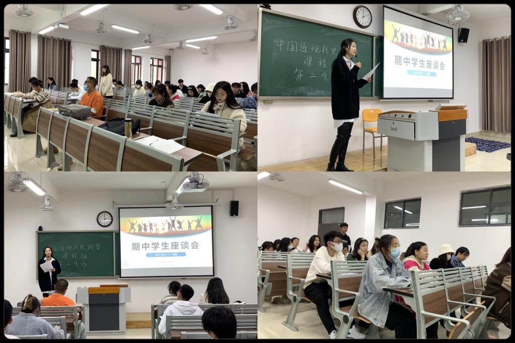 在中国近现代史纲要会场,孙澄澄老师首先阐明了本次座谈会的主旨,殷切希望到会学生代表畅所欲言,真实反馈同学们对《纲要》课程的授课内容、方式、手段、效果、课堂考勤和课堂纪律等方面的意见。会上,每位学生代表根据不同任课教师的不同表现,结合各班同学的实际情况,真实表达了同学们的所思所悟。其中不少学生认为每位任课老师授课流畅自然,并且各具特色;课程整体把握度较高,与时俱进,巧妙地将知识点与时政热点相结合;课堂内容生动多彩,真正做到讲好“中国故事”,来调动同学们的学习热度。同时也给出了一些建设性的意见,如:教学课堂中教师与学生的互动有待加强,多与学生交流和沟通;在保证授课内容完整度的同时更加突出重难点;在兼顾教学进度的同时同学们希望利用晚自习的时间来给大家带来一场沉浸式的历史电影体验。持续了一个多小时的座谈会学生参与度高,各抒己见,大胆提出问题,为加强马院的教学教育工作提供了较好的现实依据。