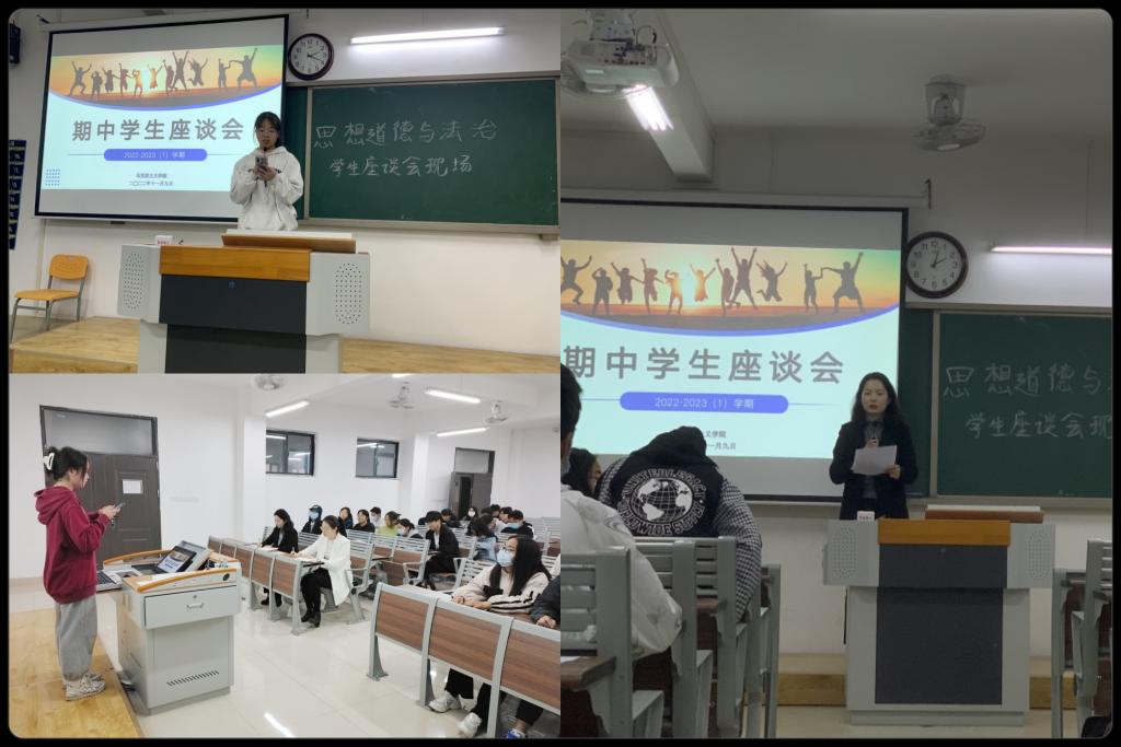 成功的教育在于有效地倾听。为加强师生间交流,了解思政理论课的教学状况,掌握学生合理诉求,进一步提升教学质量,马克思主义学院于11月9日下午14:00召开以“倾听学生心声,共促教学发展”为主题的期中学生座谈会。本次座谈会按课程分为三个会场,分别由三位教研室主任刘奔前老师、陈志操老师、孙澄澄老师主持,童安宝老师、张锦亚老师、张洁老师记录,来自各个不同院系的班级学生代表参加了本次会议。