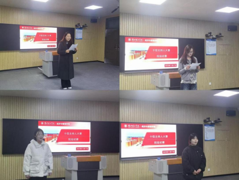 为落实校团委关于举办淮北理工学院第四届主持人大赛的通知要求。2025年11月17日,经济与管理学院成功举办第四届十佳主持人大赛初赛。本次大赛以“青春声采,驰骋未来”为主题,于一教210教室举办。评委团由辅导员李慧娴、学生会主席团成员刘梦妮及学生会文体部部长汪朱仝担任。