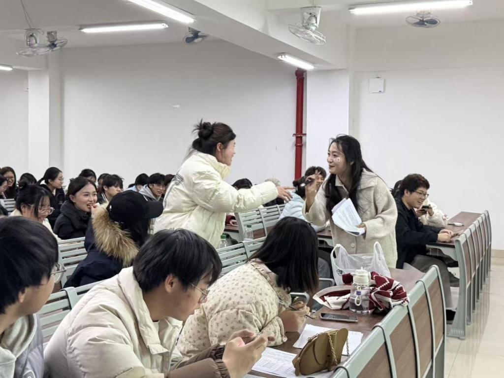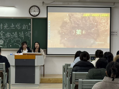 为丰富校园文化生活,缓解学生学业压力,经济与管理学院学院于2025年12月10日下午3:00,开展了 “时光点唱机,童年金曲猜猜猜” 活动。本次活动以经典童年歌曲为载体,吸引了全院120名学生踊跃参与,总计获奖人数23人,活动现场气氛热烈欢快,充满了青春活力与怀旧温情。
