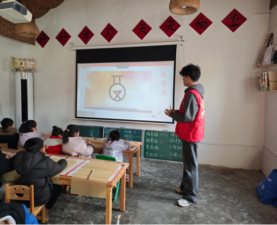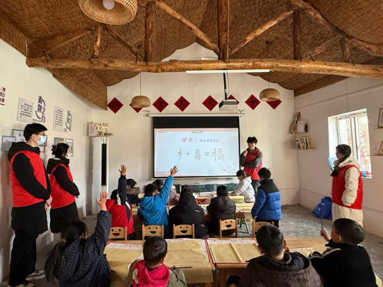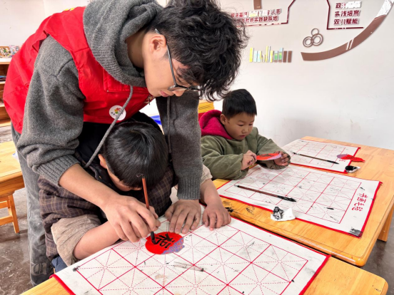 2025年1月10日,淮北理工学院“红淮儿”支教社的志愿者们如约来到梧桐村开展寒假社会实践支教活动,本支教以“笔墨迎春·福至心灵”为主题,将传统软笔书法基础教学与新春文化相结合,为乡村孩子们带来了一堂端正身心、浸润墨香的书法启蒙课,让古朴的笔画在冬日课堂中流淌出温暖的年味与文化的韵律。