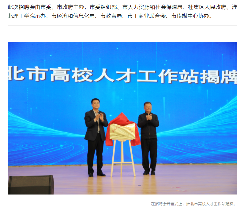为深入贯彻党中央、国务院和省委、省政府“稳就业”“保就业”决策部署,积极做好高校毕业生就业工作,抓住高校毕业生春招“黄金期”,搭建用人单位与高校毕业生充分洽谈交流平台,积极为淮北市发展输送应用型人才,3月14日上午,“淮有梦想 智引未来”--2023年淮北市“招才引智高校行”招聘活动在学校成功举办。视觉淮北对此进行了报道。