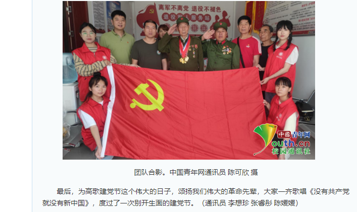 2023年6月28日至7月5日,淮北理工学院教育学院学子“团心向党·寻红怀烈”——淮北理工学院大学生赴淮北各区、县、镇关怀退伍老兵,学习革命先烈精神暑期社会实践团队,淮北革命故地开展为期一周的暑期“三下乡”社会实践活动。本次实践活动主要从参观淮北红色博物馆与革命遗址、慰问英勇红军重温红色战役以及普及红色文化和党史三个方面进行调研学习。对此,中青网作了报道: