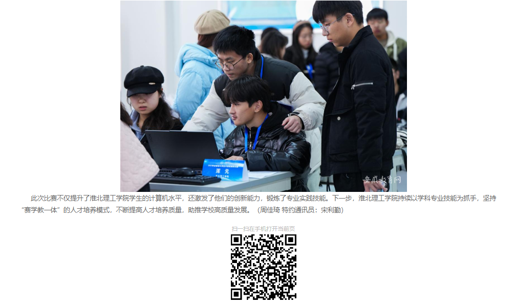 近日,安徽省大学生计算机博弈大赛(安徽省大学生学科和技能竞赛B类项目)在安徽大学举办,淮北理工学院电子与信息工程学院计算机科学与技术专业学生首次参加此项比赛,取得二等奖1项、三等奖1项的好成绩。对此,安徽教育网进行报道:
