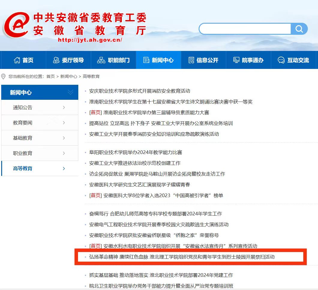 安徽省政府 安徽省教育厅 淮北市政府 淮北师范大学 淮北市教育局 中国教育和科研计算机网 国家高等教育智慧教育平台