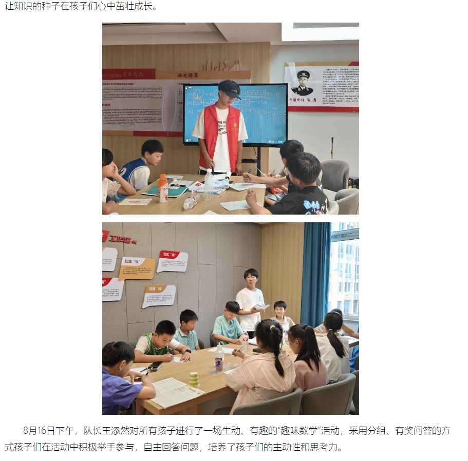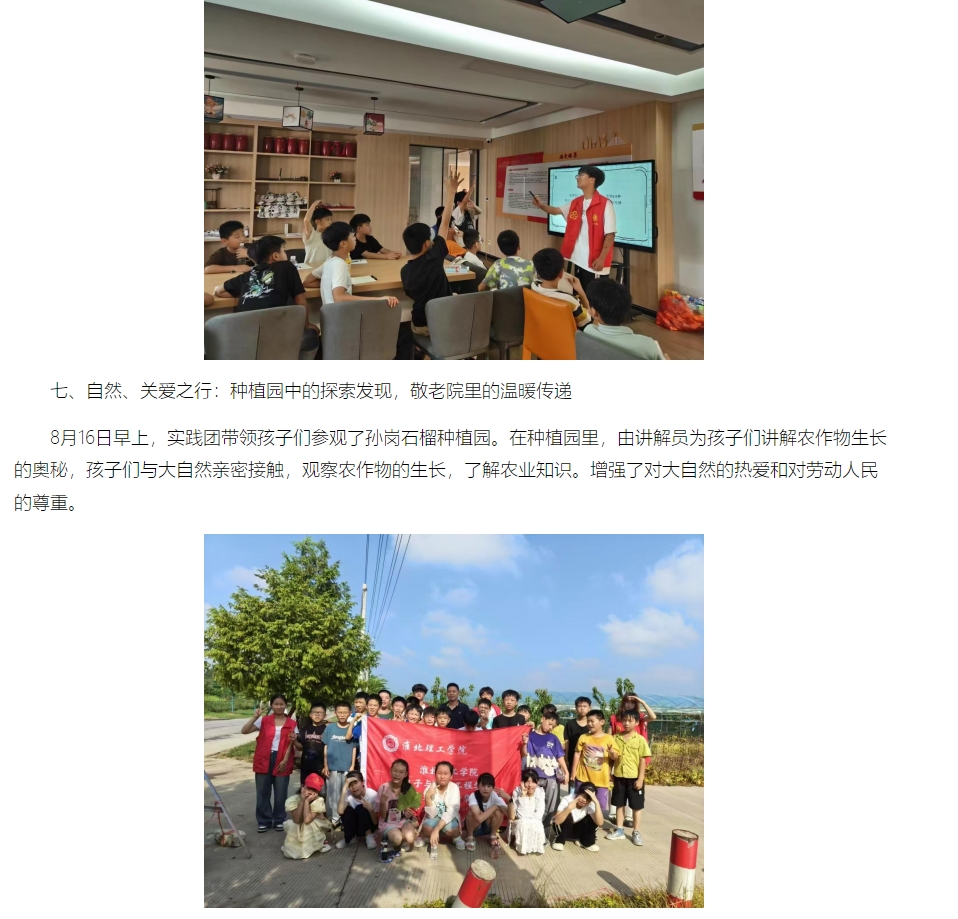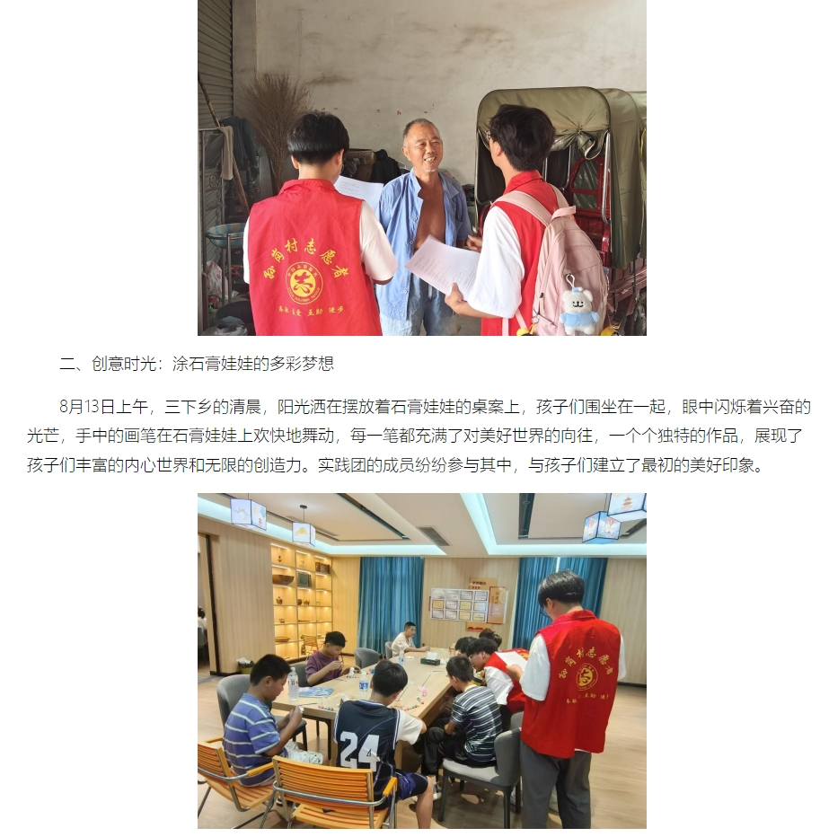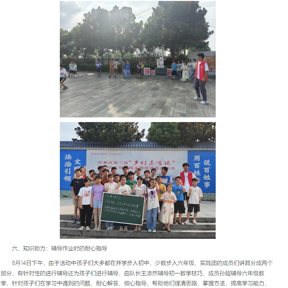 8月12日至8月18日淮北理工学院电子与信息工程学院“爱心相伴,童心飞扬”社会实践团赴六安市孙岗乡开展为期7天的暑期“三下乡”社会实践活动。此次活动以关爱乡村儿童为核心,旨在为孩子们带来丰富多彩的知识和欢乐,拓宽他们的视野,激发他们对未来的憧憬。让淮理工青年学子在青春实践中展现青春作为、彰显青春风采、贡献青春力量、抒写青春故事。对此,中国网中国国情进行了报道: