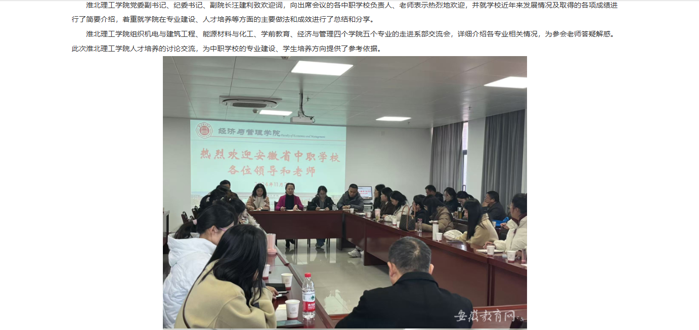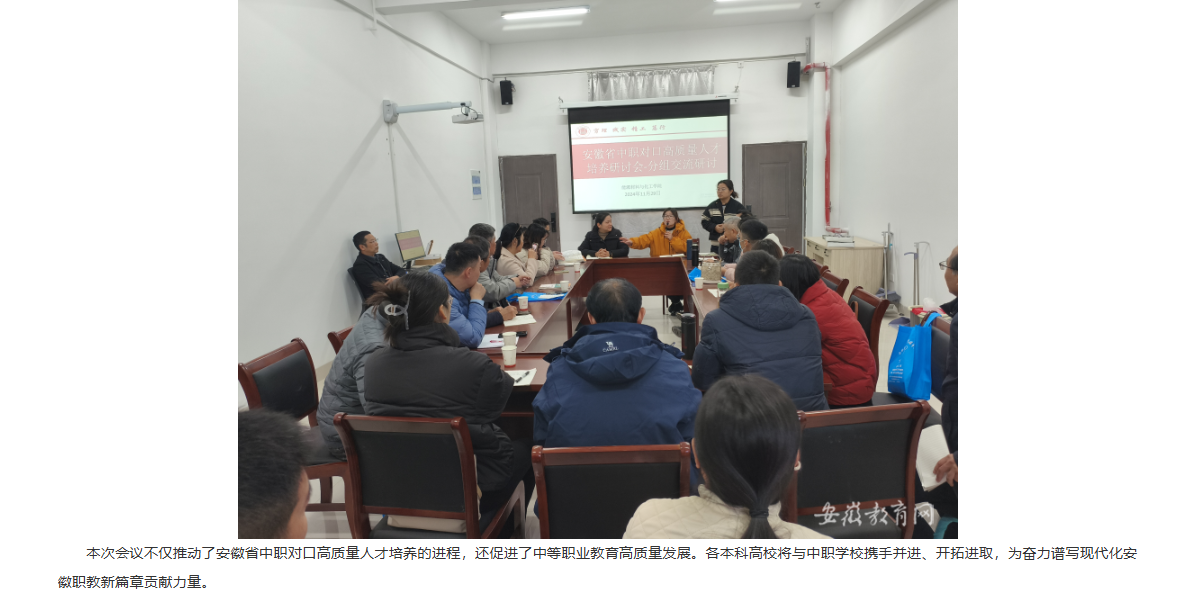为贯彻《落实职教高考政策,促进职普教育相互融通职业教育加快高层次人才培养》文件精神,推进安徽省中等职业教育高质量发展,11月29日,由安徽省中职“五校联盟”主办,淮北理工学院承办的安徽省中职对口高质量人才培养研讨会暨安徽省中职“五校联盟”2025届第四次联考分析会在淮北理工学院顺利举行,全省61所中职学校校领导、教务主任、骨干教师等近240人参加会议。“五校联盟”秘书长、蒙城县职业教育中心校务委员谢广臣主持会议。对此,安徽教育网进行了报道: