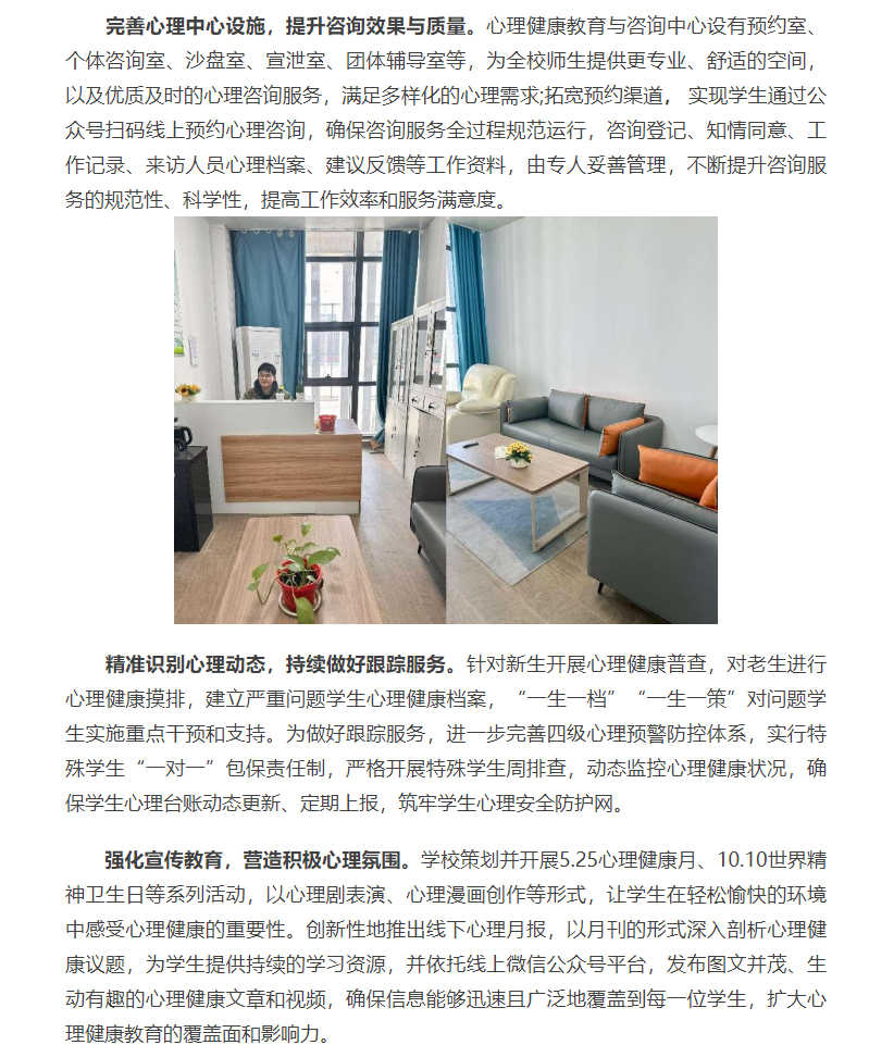 为全面贯彻落实《全面加强和改进新时代学生心理健康工作专项行动计划(2023—2025年)》等文件精神,始终坚守立德树人的初心,不断强化心理育人的使命,用心育人、用爱帮扶,淮北理工学院全力推进完善学校心理育人各项工作,精准护航学生心理健康成长。对此,中华网进行了报道: