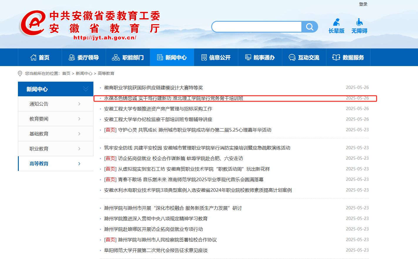 安徽省政府 安徽省教育厅 淮北市政府 淮北师范大学 淮北市教育局 中国教育和科研计算机网 国家高等教育智慧教育平台