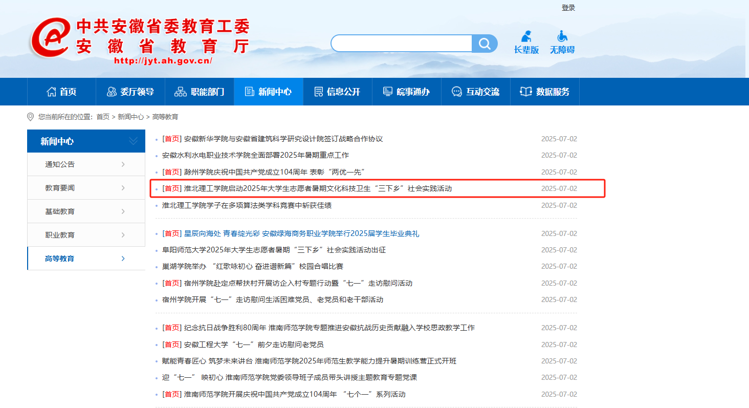 安徽省政府 安徽省教育厅 淮北市政府 淮北师范大学 淮北市教育局 中国教育和科研计算机网 国家高等教育智慧教育平台