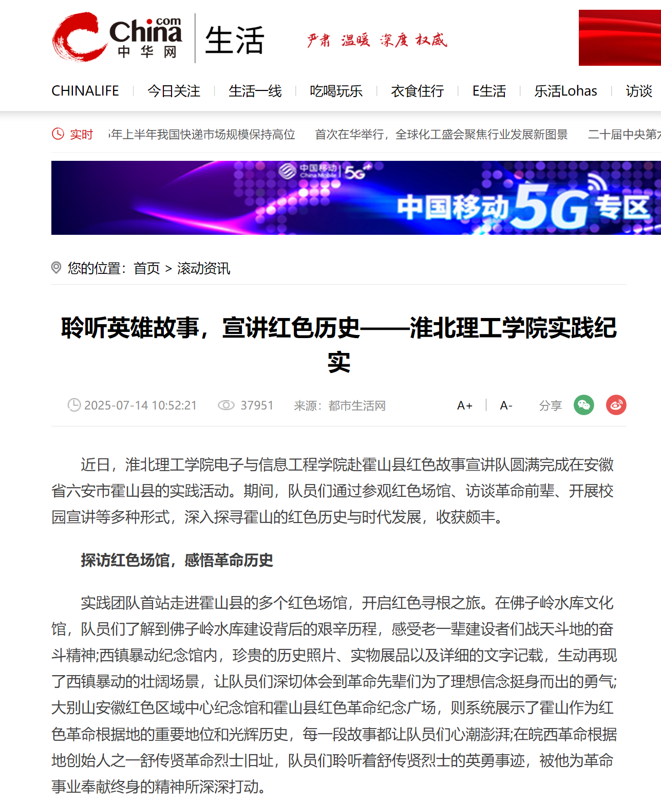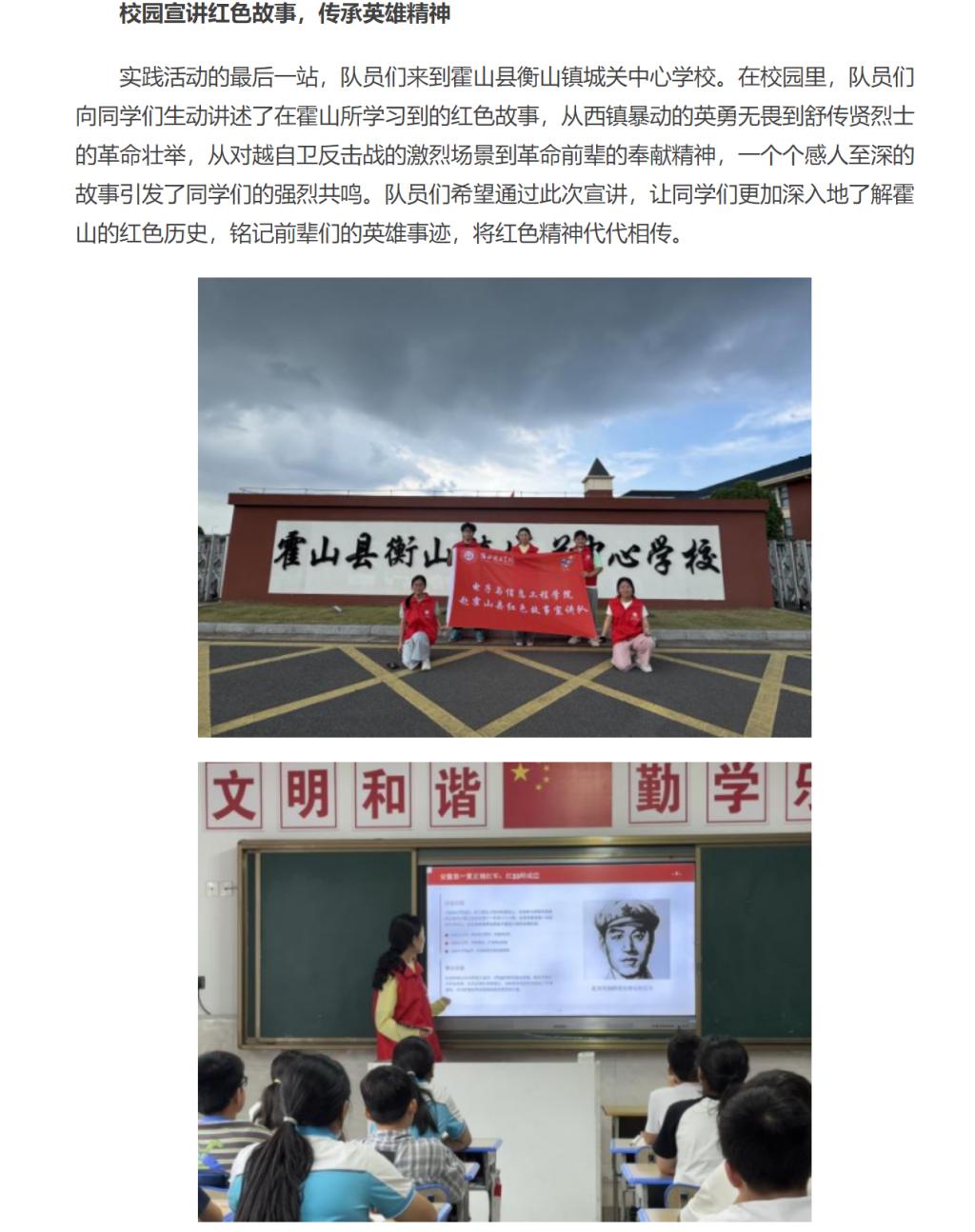 近日,淮北理工学院电子与信息工程学院赴霍山县红色故事宣讲队圆满完成在安徽省六安市霍山县的实践活动。期间,队员们通过参观红色场馆、访谈革命前辈、开展校园宣讲等多种形式,深入探寻霍山的红色历史与时代发展,收获颇丰。对此,中华网进行了报道: