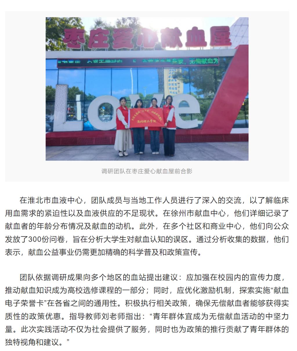 为积极响应国家卫生健康委员会关于“无偿献血,传递爱心”的倡议,进一步推广“奉献、友爱、互助、进步”的志愿服务理念,支持社会公益事业的发展,淮北理工学院教育学院组织学生成立无偿献血宣传及调研团队。对此,环球网进行了报道: