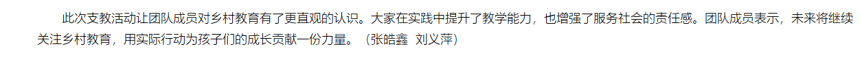 2026年寒假,淮北理工学院教育学院“大爱无疆团队”前往安徽省宿州市开展红色文化支教实践活动。团队由张皓鑫、魏海冰、晁鸿博、李美梦四名同学组成,旨在通过切实的教学与交流,为乡村孩子带去知识与陪伴。对此,中国网进行了报道: