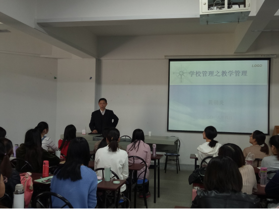 2018年4月17日早上9点,受湖北大学外国语学院研究生院之邀,我校数学与统计学学院黄朝炎教授在逸夫人文楼A3002为全体2017级教育硕士带来了一场题为“学校管理之教学管理”的讲座。此次讲座由外国语学院王家芝教授主持。