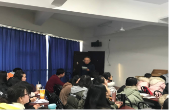 钟勇教授强调翻译要建立在理论框架上。只有精通特定的翻译理论,我们的译文才有特色。他建议我们,“磨刀不误砍柴工”,理论掌握扎实了再进行翻译实践。此外,以证书和“八荣八耻”为实例,钟勇教授引导我们鉴赏并分析不同翻译理论下采用的不同译法,鼓励我们现场翻译并讨论所给译作的优缺点,使师生参与的热情高涨。在最后的提问环节中,现场气氛活跃,师生间碰撞出许多智慧的火花。