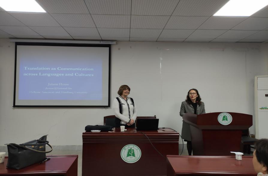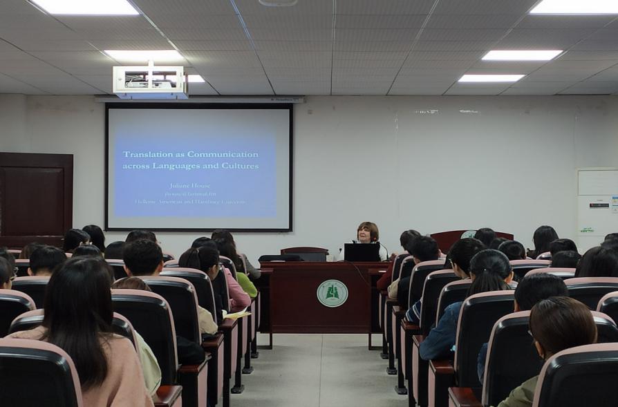 10月31日上午,Juliane House教授应邀莅临我院,与我院师生开展了题为“Translation as Communication across Languages and Cultures”的主题讲座。本次讲座在逸夫人文楼A2014举行,由翻译系副教授邢星老师主持,外国语学院全体研究生与教师参加。