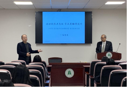 为深入贯彻落实教育部《高等学校课程思政建设指导纲要》,进一步落实立德树人的根本任务,把思想政治教育贯穿人才培养体系,深入推进学院课程思政建设,11月19日,学院特邀省教育专家、湖北省教育厅原副巡视员孙望安,为学院师生开展题为“读时政经典文献,学汉英翻译技巧——学习《习近平谈治国理政》英文版的心得”的学术讲座。本次讲座在逸夫人文楼A2014举行,由外国语学院副院长杨小彬教授主持。