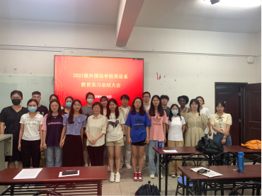 6月19日下午,2021级学科教学(英语)专业研究生实习总结大会在逸夫楼A3002举行。外国语学院胡雪飞老师和班主任梅勇老师出席会议,2021级学科教学(英语)全体同学以线上和线下相结合的方式参加会议,2021级学科教学(英语)专业班长黄宇翔主持会议。