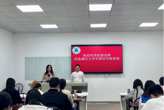 10月27日,湖北省委外办外事翻译中心英语翻译张银受邀莅临湖北大学外国语学院,为2023级翻译专业硕士研究生带来了一场题为“外事翻译:关于理解与表达的艺术”的讲座。本次讲座在逸夫楼A座1010教室举行,殷燕教授主持本次讲座。