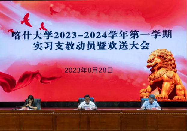 8月28日,我校2023年秋季学期实习支教动员暨欢送大会在新泉校区新时代会堂隆重举行。校党委副书记、校长买买提明•木沙,校党委副书记赵斌出席并讲话,相关学院领导、班主任、实习支教师生参加了会议。