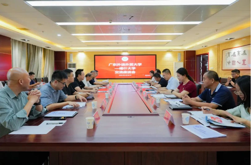 6月26日,广东外语外贸大学党委副书记唐锐一行来我校调研交流,校党委常委、副校长罗浩波陪同调研并座谈,我校相关部门、学院代表参加此次座谈。
