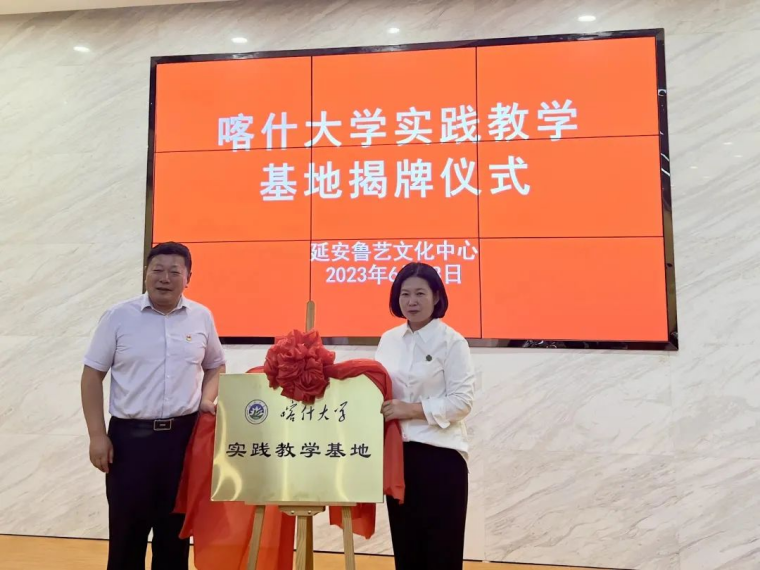 仪式上,喀什大学党委常委、宣传部部长丛培兵与延安鲁艺文化中心主任刘妮共同为实践教学基地揭牌,并与延安鲁艺文化中心副主任侯海成签订了合作协议。